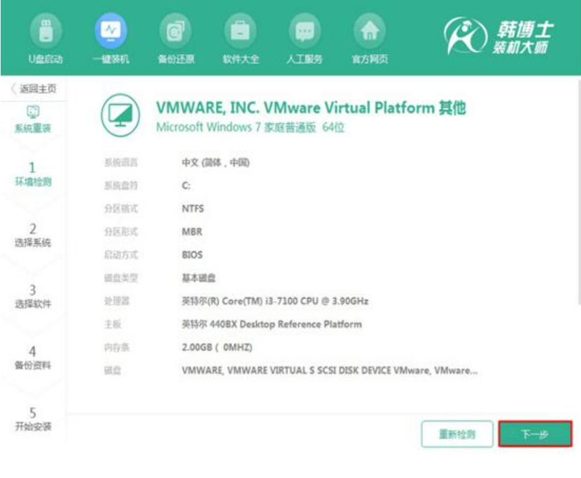 2、等電腦自動檢測完配置信息之后,開始點擊"下一步"繼續操作。
