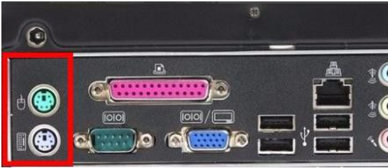 1、如果說方法一行不通的話,那就看下電腦接口有沒有老式的鼠標接口,也就是圓口的那種,有得話就能使用老式的鼠標來操控電腦。