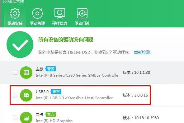 3、進入安全模式后,這種情況下一般鼠標鍵盤是可用的,那就只要更新一下usb驅動即可。自行下載安裝好360驅動大師或者驅動精靈軟件,然后檢測更新usb3.0驅動完成后,重啟到正常模式下鼠標鍵盤就可以用了。