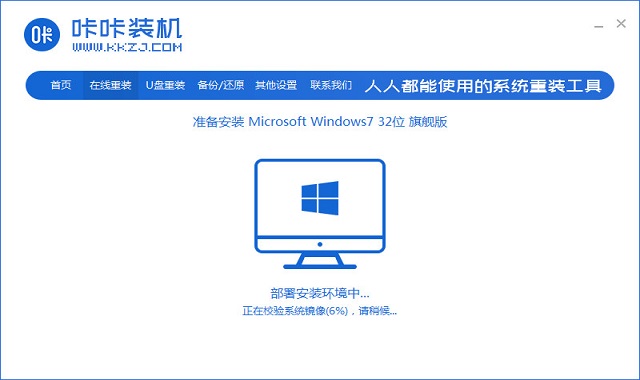 下載咔咔一鍵裝機,利用軟件里面的在線重裝就可以進行系統的重裝了。