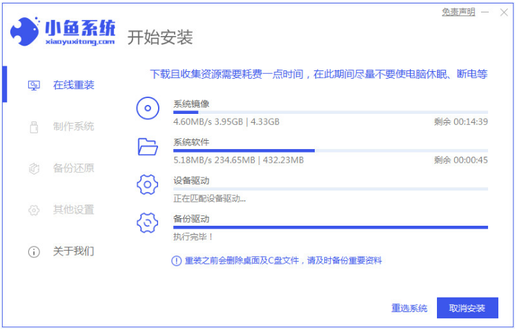 6、進入小白軟件將會開始進行win7系統的安裝,等待安裝完成。