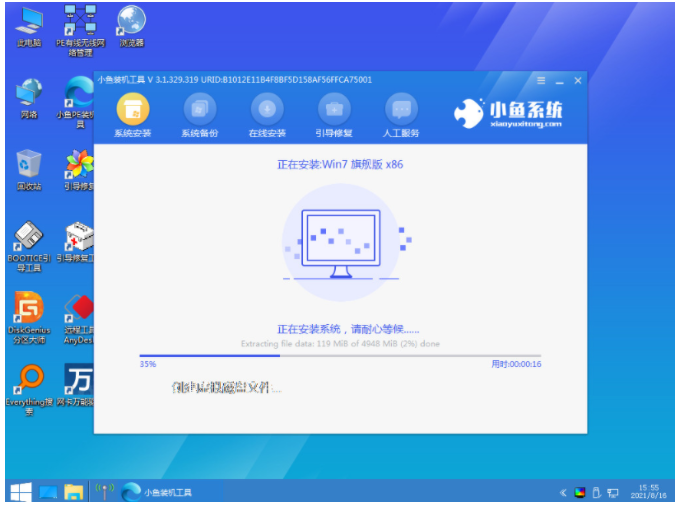 6、小魚裝機軟件此時將會自動開始安裝windows7系統。