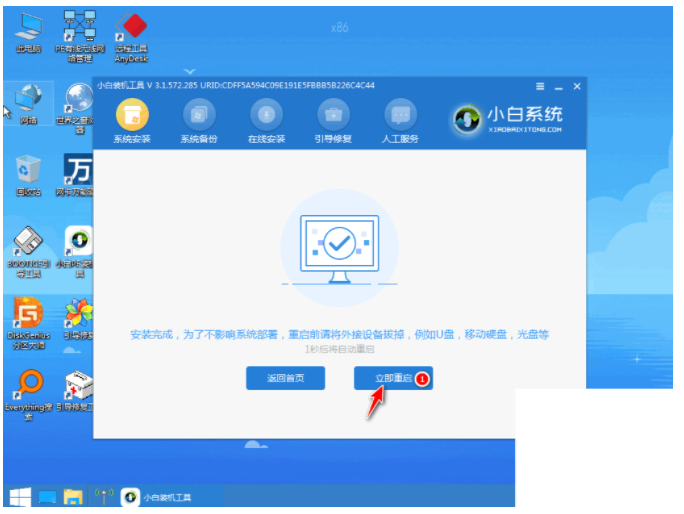3、裝機軟件自動安裝成功后選擇重啟電腦;