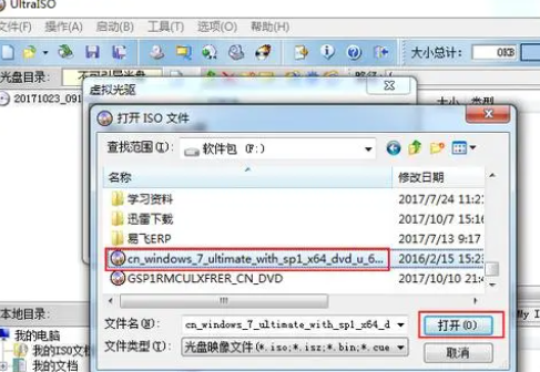 3、在彈出來的會話對話框中挑選一個光碟封裝文檔,這兒以一個文件后綴名為ISO格式的Windows 7系統鏡像安裝包開展舉例子。