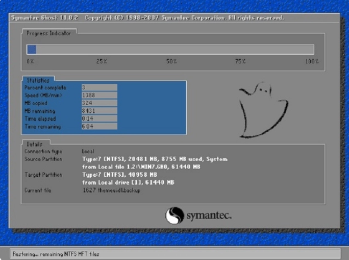 4.如果一切順利,Ghost部署將再次重新啟動計算機。此時,輸入系統安裝界面。