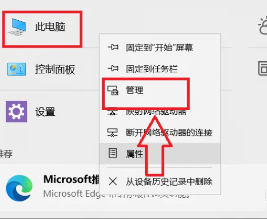 右鍵點擊我的電腦圖標,在下拉窗口中點擊管理選項