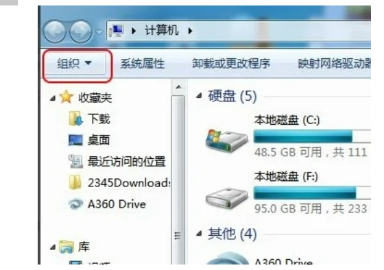 1、進入計算機,點擊頁面左側的組織按鈕;