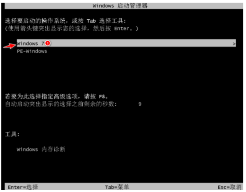 7、電腦經過重啟之后,選擇Win7系統進入即可。