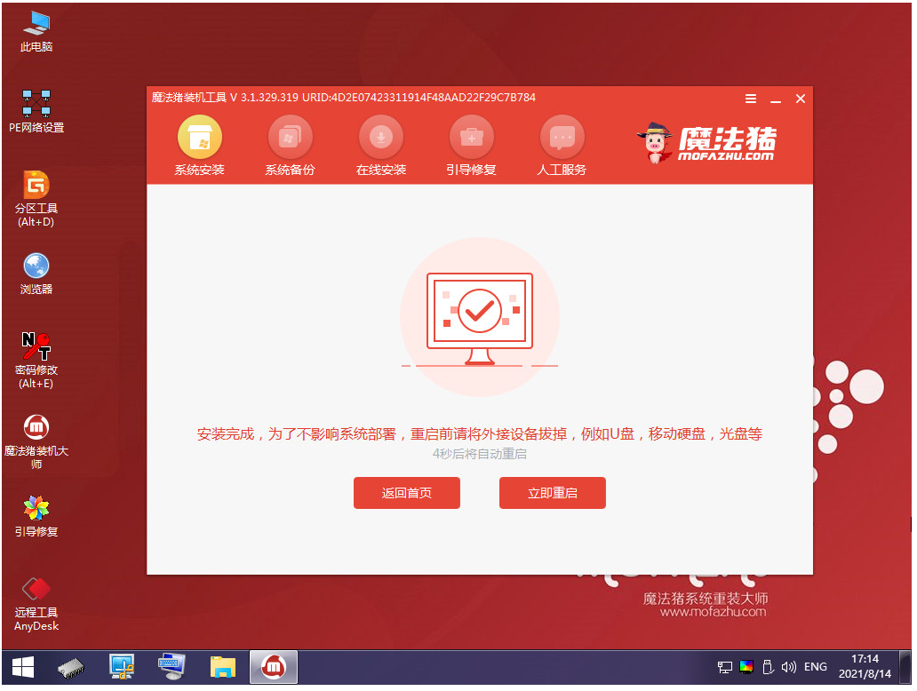 1、備份電腦c盤的資料,運行裝機軟件,進行系統的在線安裝,小編這里使用的是魔法豬一鍵重裝系統。