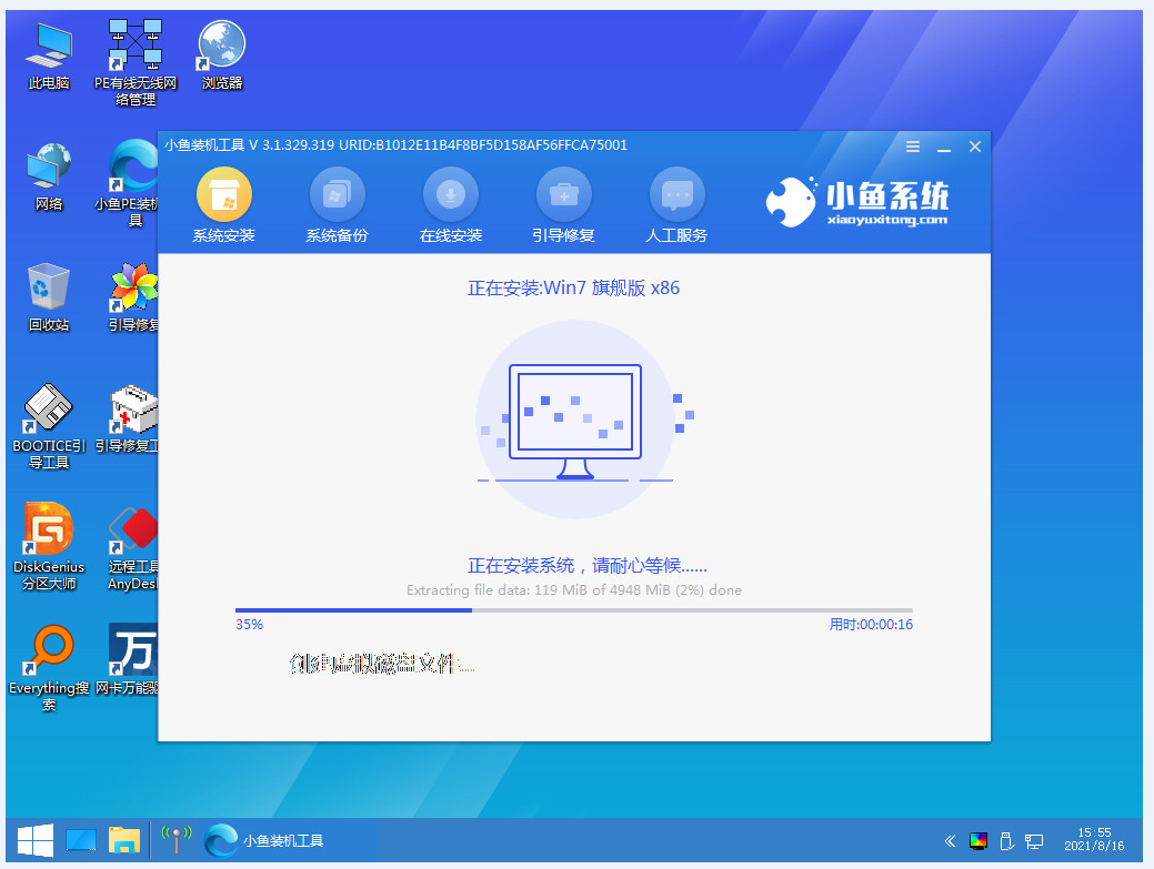 6、進入PE系統之后,小魚軟件將會自動安裝win7系統,耐心等待。
