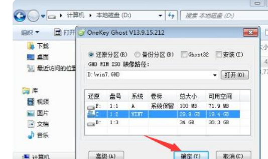 3.鼠標雙擊打開Onekey.ghost安裝工具,選擇還原分區,點擊確定。