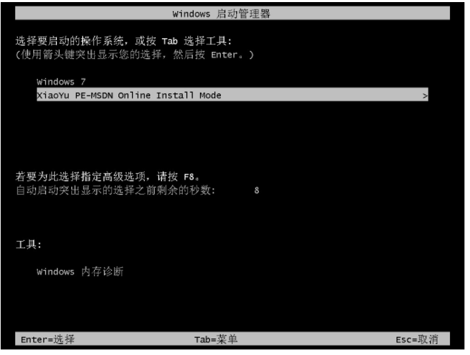 5、重啟電腦之后選擇“XiaoYu PE-MSDN Online Install Mode”系統按回車鍵進入。
