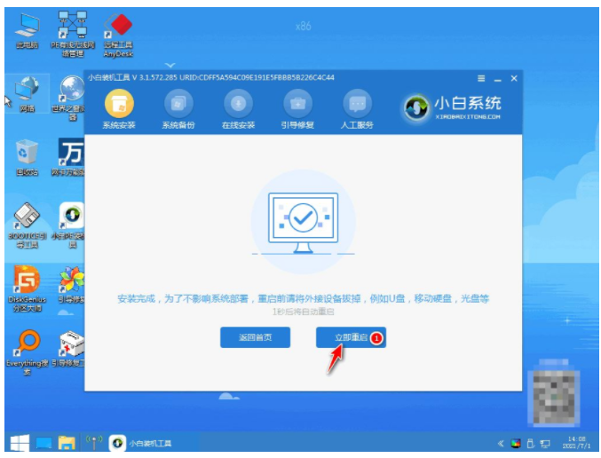 3、當裝機軟件下載完成后會自動部署且提示立即重啟。