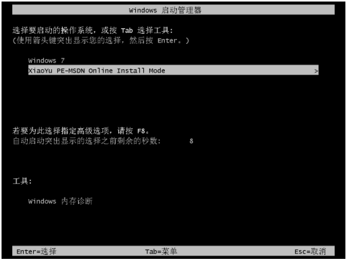 4、按回車鍵進入到“XiaoYu PE-MSDN Online Install Mode”系統。