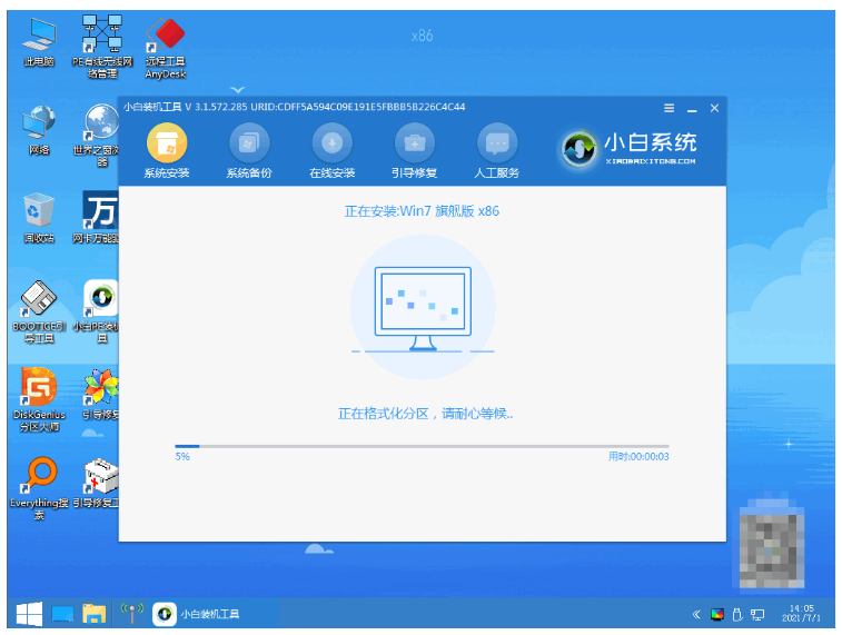 3、進入pe系統小白裝機工具會開始自動進行win7系統安裝。