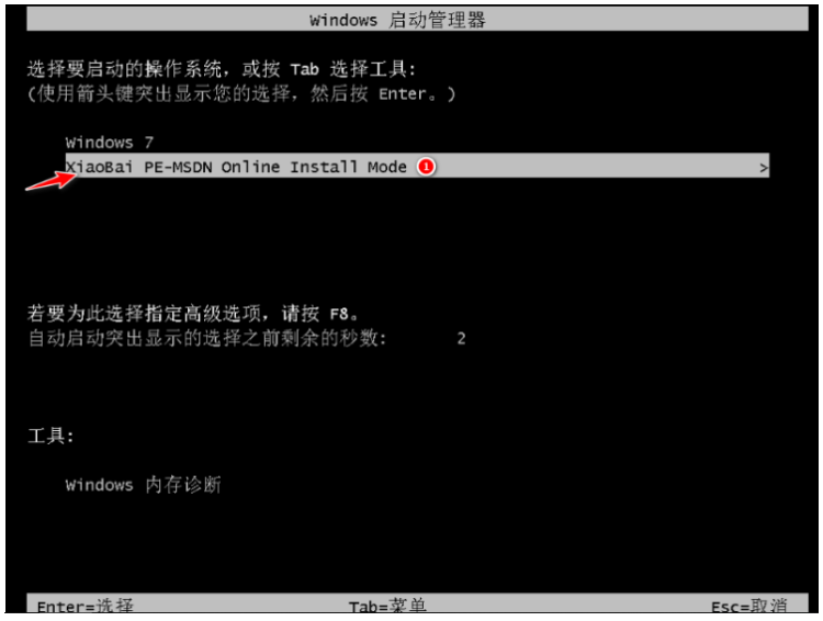 5、重啟電腦之后,我們選擇第二項xiaobai-pe系統按回車鍵進入。