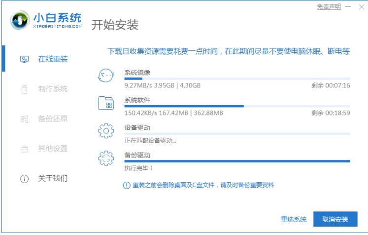 2、裝機軟件此時將會開始下載win7系統鏡像資料以及驅動。