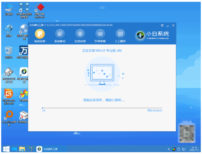5、進入電腦pe系統界面,開始安裝Windows10系統。