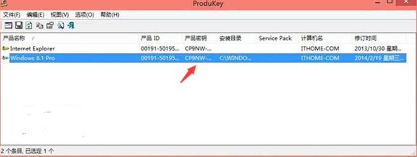 方法二:利用軟件“產品密鑰查詢工具Product Key”: