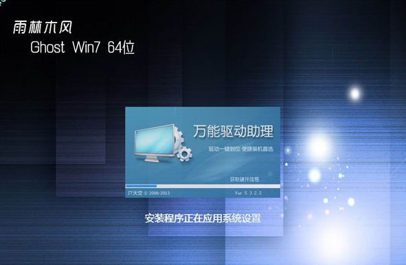 上述過程結束后,電腦會再次重啟,進入這個界面,開始安裝雨林木風win7系統。