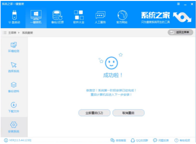 6、系統安裝完成后,點擊立即重啟按鈕。