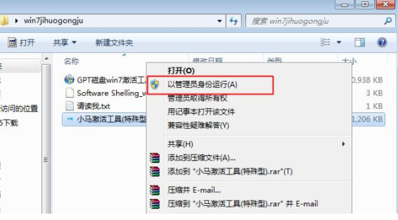 2、右鍵小馬激活工具,選擇以管理員身份運行;