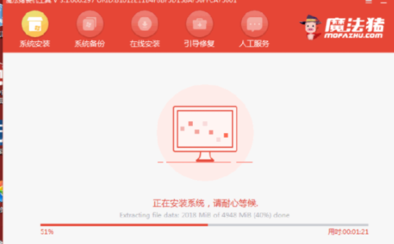 1、首先我們需要在自己的戴爾電腦上下載一個魔法豬重裝軟件,安裝打開軟件選擇在線重裝,選擇我們要重裝的win7系統。