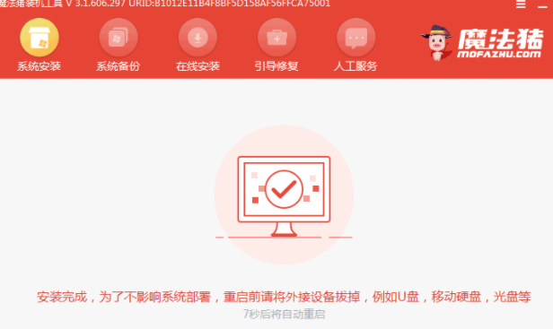 6、安裝完成后選擇重啟電腦,重啟之前拔掉外接設備。