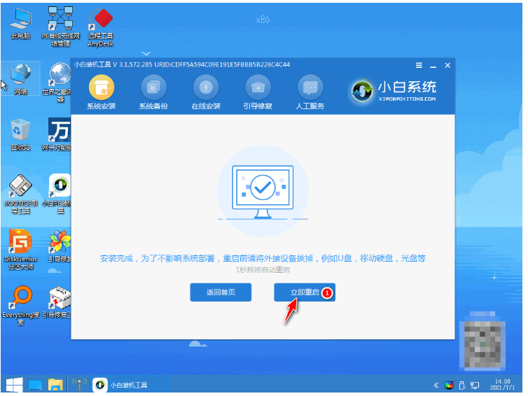 6、系統安裝完成后再次點擊立即重啟電腦。