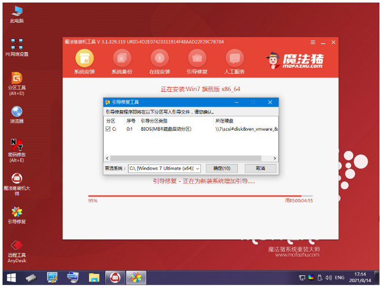 5、硬盤分區,修復引導過程中。
