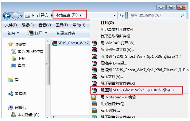 1、首先在電腦下載所需系統win7 iso鏡像到本地硬盤,鼠標右鍵使用WinRAR等等工具解壓出來;