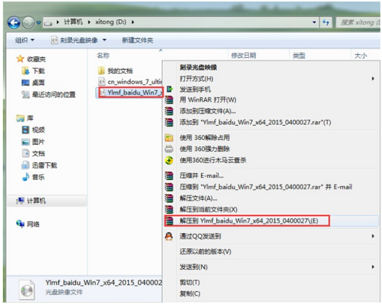 1、首先需要在網上下載一個雨林木風win7系統鏡像,接著使用壓縮軟件將雨林木風win7系統鏡像解壓出來,大家注意下載和解壓到C盤哦。