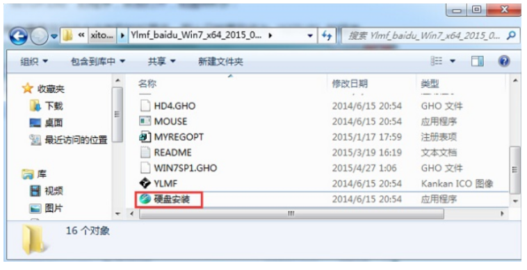 2、點擊打開解壓好的雨林木風win7系統文件夾,選擇“硬盤安裝”程序打開,進入到下一步。