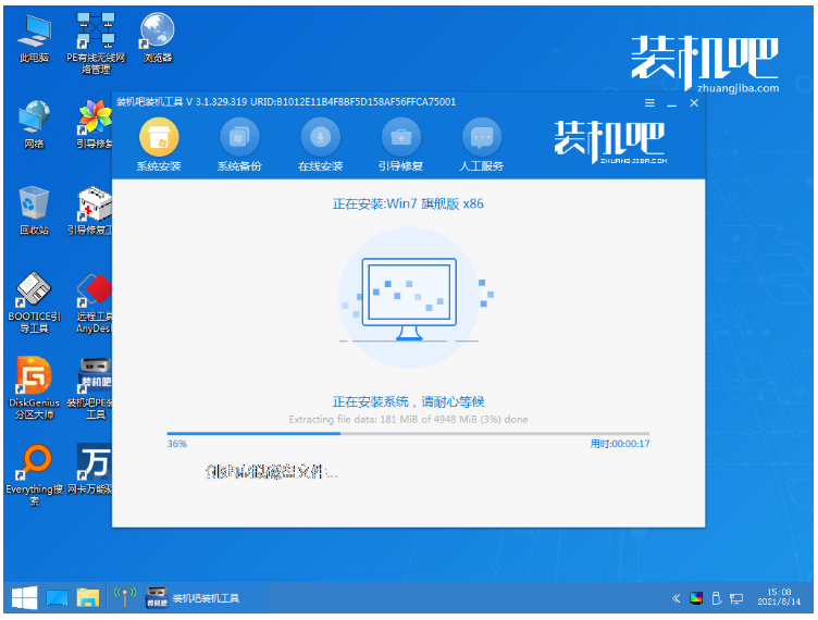 6、在電腦的pe系統界面中打開裝機吧工具,進行系統的安裝。