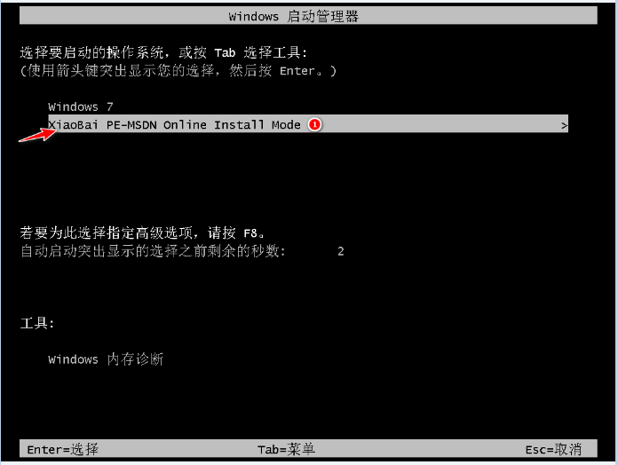 2、下載完成后后重啟電腦選擇進入pe系繼續安裝;