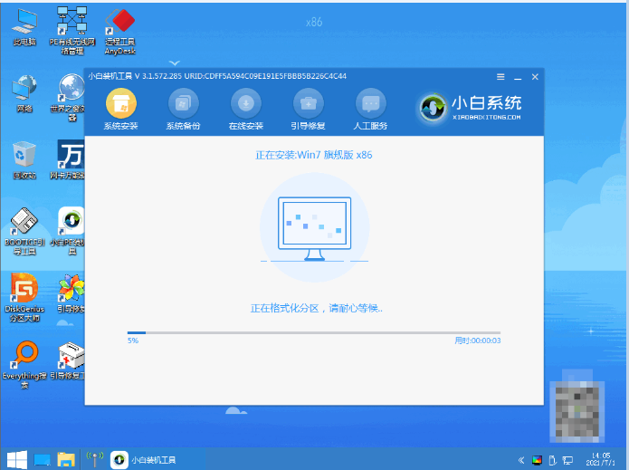 5.進入到 PE 系統界面中,繼續打開裝機工具進行win7系統的安裝。