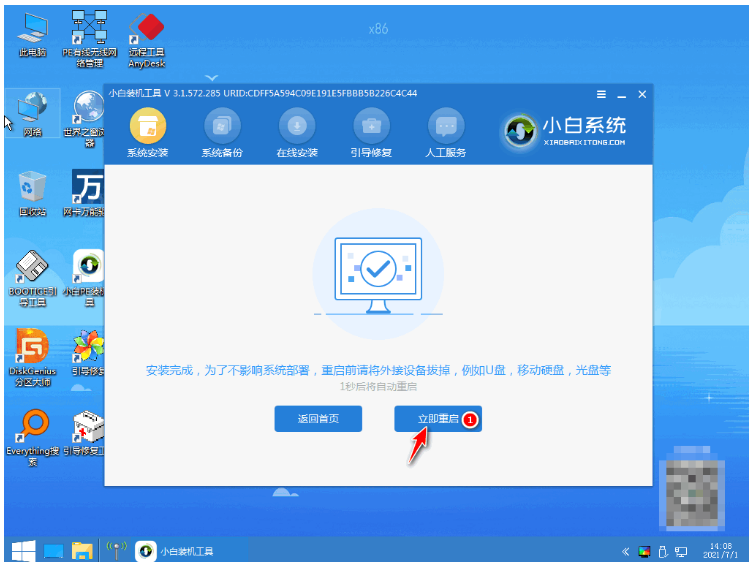 6、系統安裝完成之后,再次點擊立即重啟電腦。