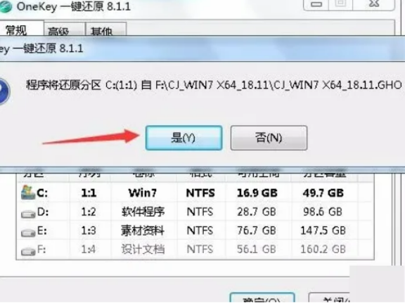 4.當彈出窗口提示是否重啟電腦時,選擇是:注意電腦重啟后系統磁盤的所有文件都將丟失,所以關機前請做備份。