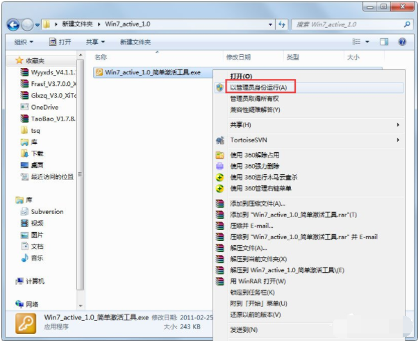 2、選中解壓后的激活工具,右鍵菜單欄,選擇“以管理員身份運行”。