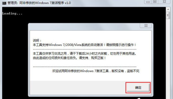 3、運行激活工具,首先看到工具的版權聲明,點擊“確定”。