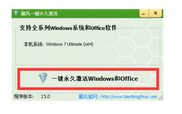 暴風激活工具可以一鍵永久激活win7系統,win8系統,win8.1系統,win10系統還有各系列的Office軟件,一鍵就可以輕松實現永久完美離線激活,完全超越其他的激活工具。