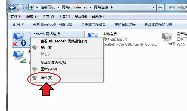 進到頁面電腦鼠標右鍵,點一下藍牙,發生對話框,點擊【屬性】。