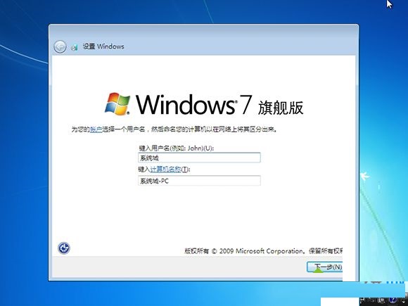 9、重啟進入到正版win7系統配置界面,根據提示進行設置;
