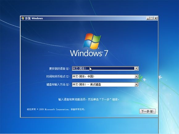 2、從U盤啟動直接進入正版win7安裝界面,語言、輸入方法默認無需修改,直接點擊下一步;
