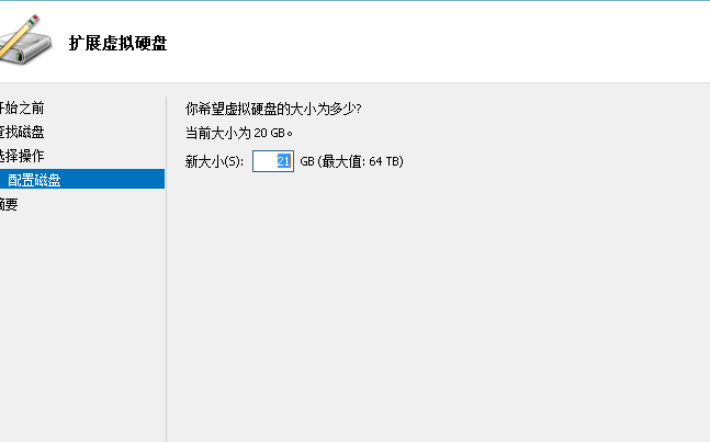4.點擊下一步你就會看到 “你希望虛擬硬盤的大小為多少”,然后我們就可以更改內存來讓我們不會再卡在安裝完成界面了。