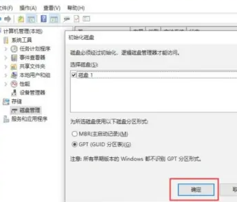 5、初始化磁盤窗口,參數可以直接默認,然后點擊確定即可。
