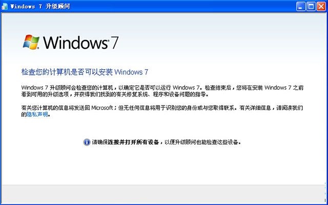 1、點擊下載windows7升級顧問,安裝到當前老電腦上;