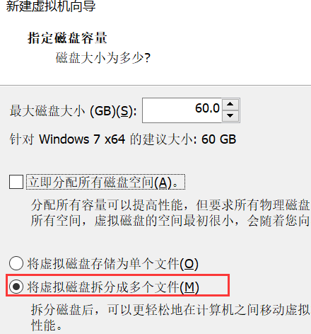 十五、選擇將虛擬磁盤拆分成多個文件,以方便后面分區,點擊下一步。
