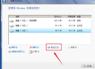 二十六、點擊新建,新建兩個分區,一個大小為20G,用于存放系統,另一部分用于安裝其他軟件。然后分別選中每個分區,點擊格式化。注意:記得全部格式化一遍。