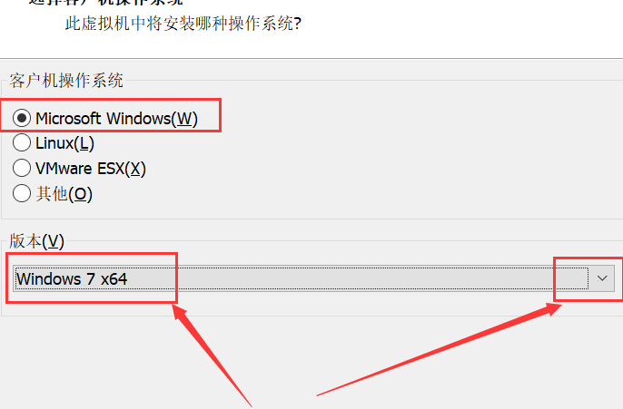 六、客戶機操作系統選擇windows,版本選擇windows 7 x64。